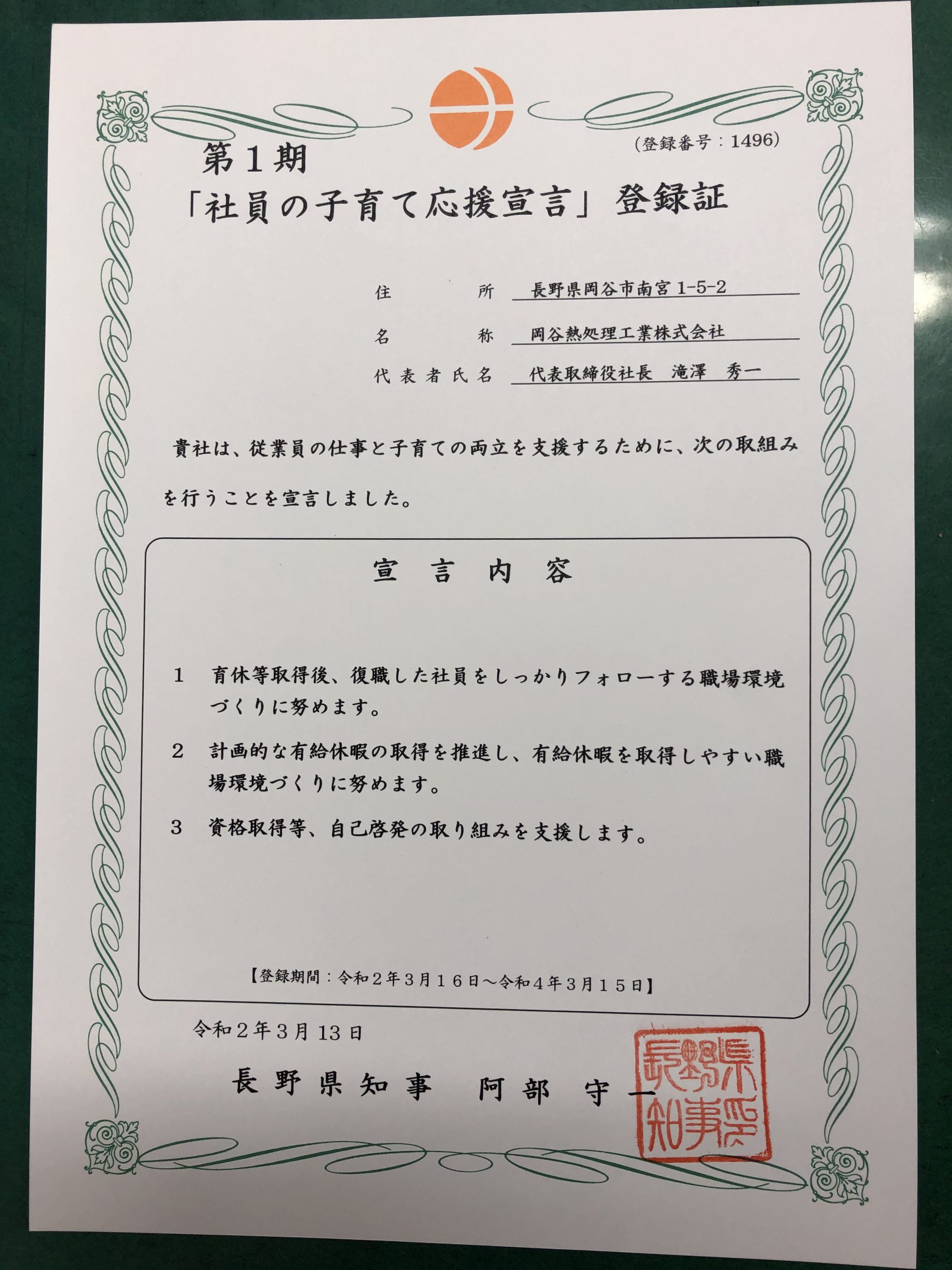 「社員の子育て応援宣言」に3月16日付で登録いたしました。